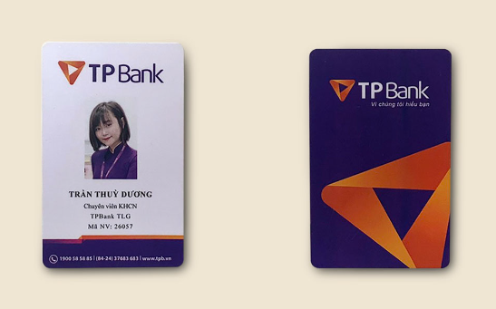 Thẻ nhân viên nhựa PVC: Đây là loại thẻ phổ biến nhất hiện nay. Với chất liệu nhựa PVC cao cấp, thẻ có độ bền cao, không bị ảnh hưởng bởi các yếu tố thời tiết, nước, hoặc hóa chất. Mặt thẻ có thể được in hai mặt với màu sắc sắc nét, rõ ràng.