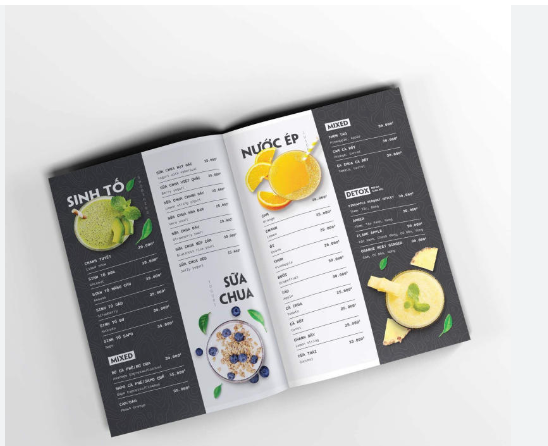 Với chất liệu bìa cứng và các kỹ thuật in ấn tiên tiến, menu được bảo vệ khỏi các tác động bên ngoài và duy trì được sự đẹp mắt lâu dài. Điều này đảm bảo rằng menu không chỉ là công cụ tiếp thị mà còn là một phần không thể thiếu trong trải nghiệm của khách hàng.